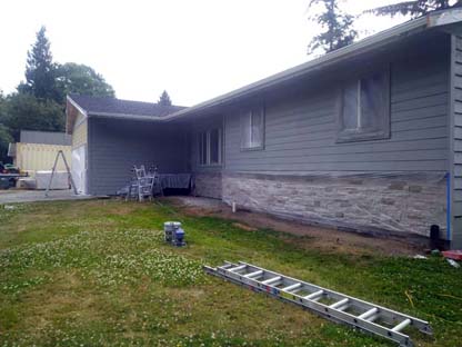 Backyard Renovation with Artifiical Rock & Decorative Concrete Slab